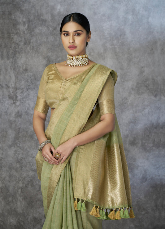 Pista Green Cotton Silk Easy/Readymade Saree