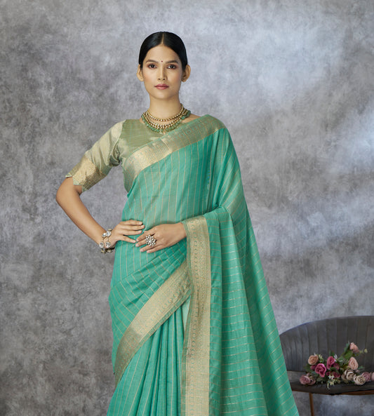 Sea Green Cotton Silk Easy/Readymade Saree