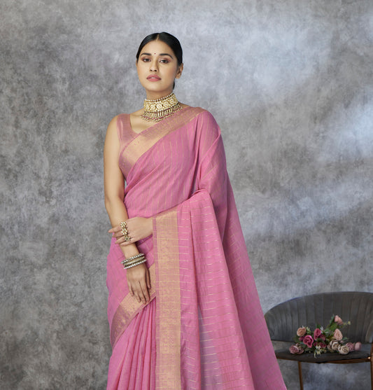 Rose Pink Cotton Silk Easy/Readymade Saree