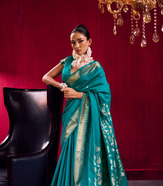 Teal Green Kataan Silk Readymade/Easy Saree