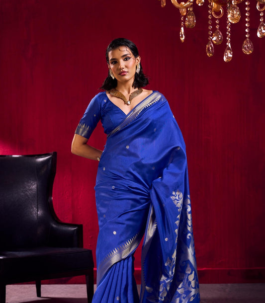 Royal Blue Kataan Silk Readymade/Easy Saree