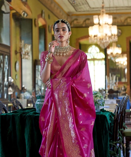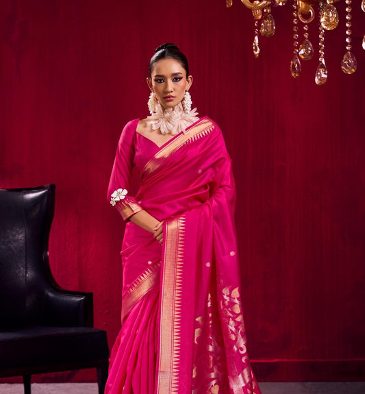 Fuchsia Pink Kataan Silk Readymade/Easy Saree