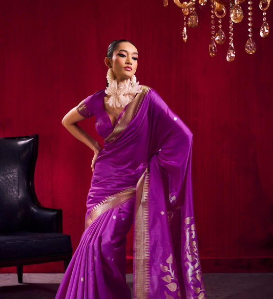 Royal Purple Kataan Silk Readymade/Easy Saree