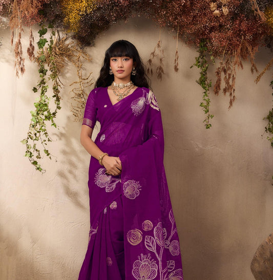 Purple Munga Silk Readymade/Easy Saree