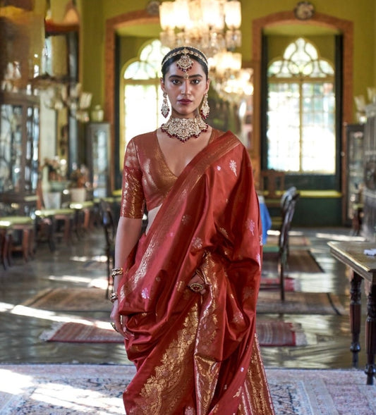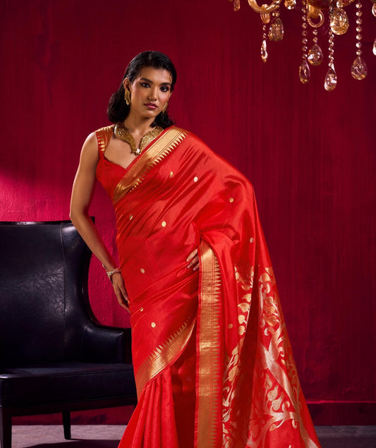 Red Kataan Silk Readymade/Easy Saree