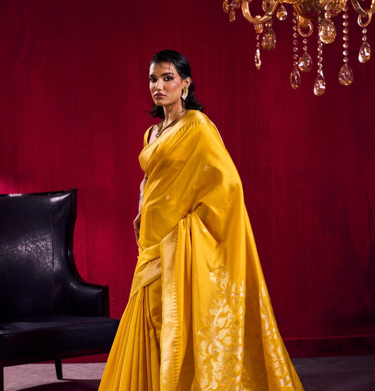 Mustard Yellow Kataan Silk Readymade/Easy Saree