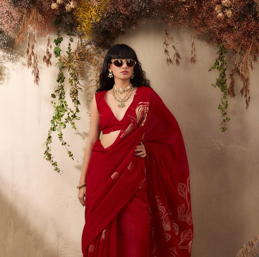 Crimson Red Soft Silk Readymade/Easy Saree