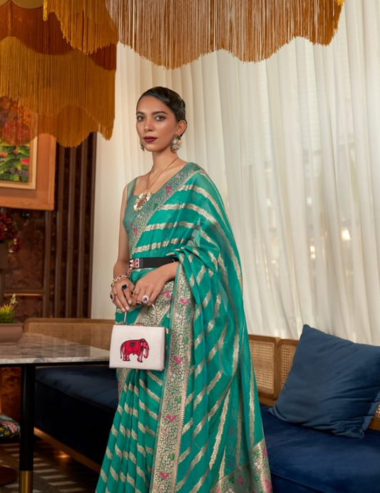 Green Crepe Silk Office wear Readymade/Easy Saree