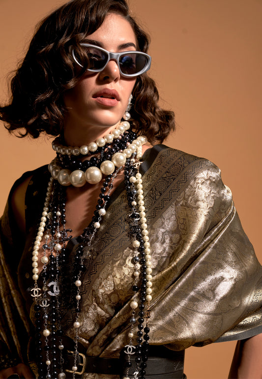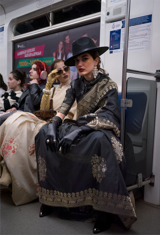 Plus Size Black Color Kanjivaram Silk Readymade Saree