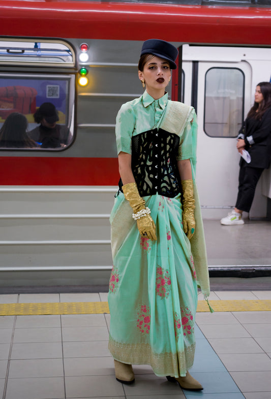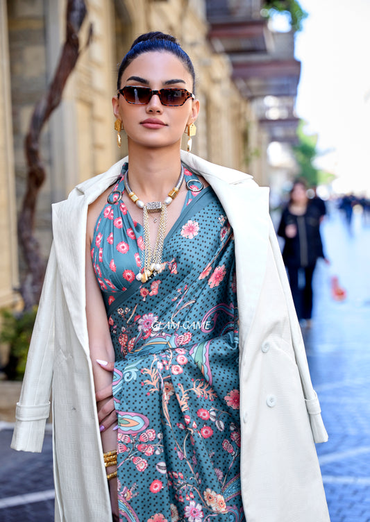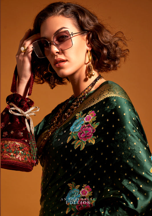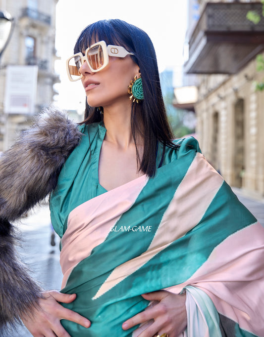 Bottle Green Color Satin Silk Readymade/Easy Saree
