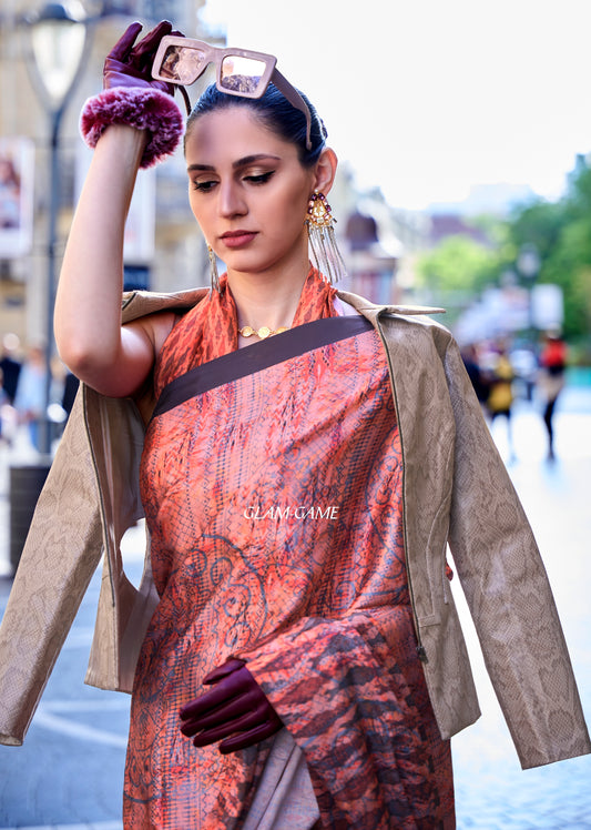 Plus Size Peach Color Crepe Silk Readymade Saree