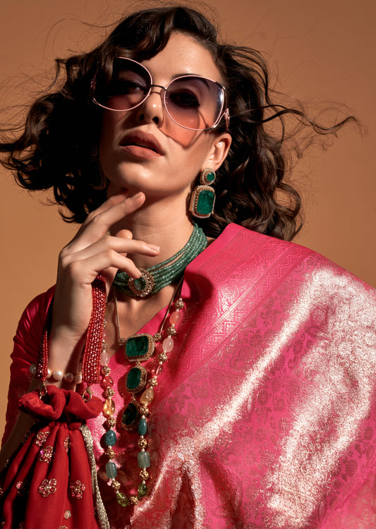 Plus Size Pink Color Kanjivaram Silk Readymade Saree