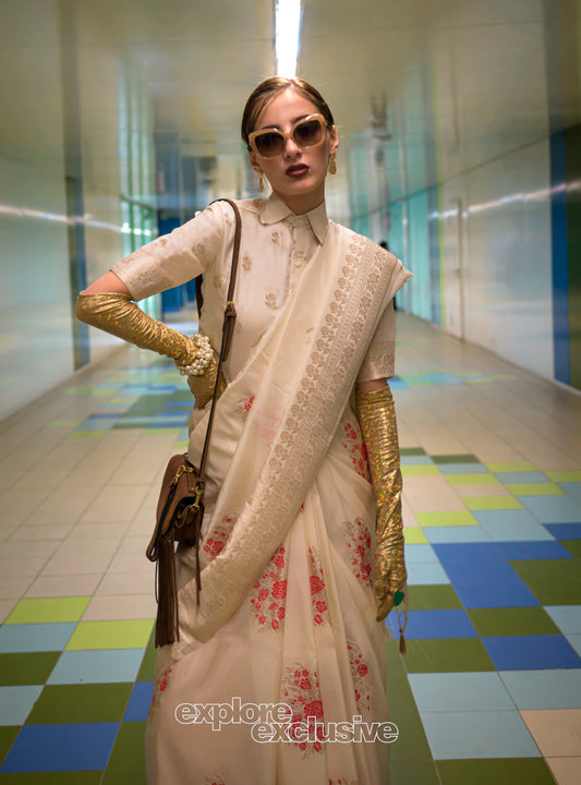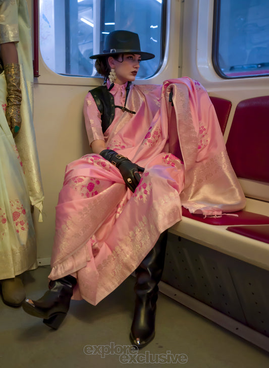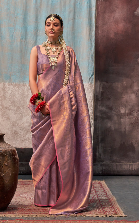 Rose Gold Kanjivaram Silk Readymade/Easy Saree