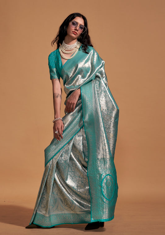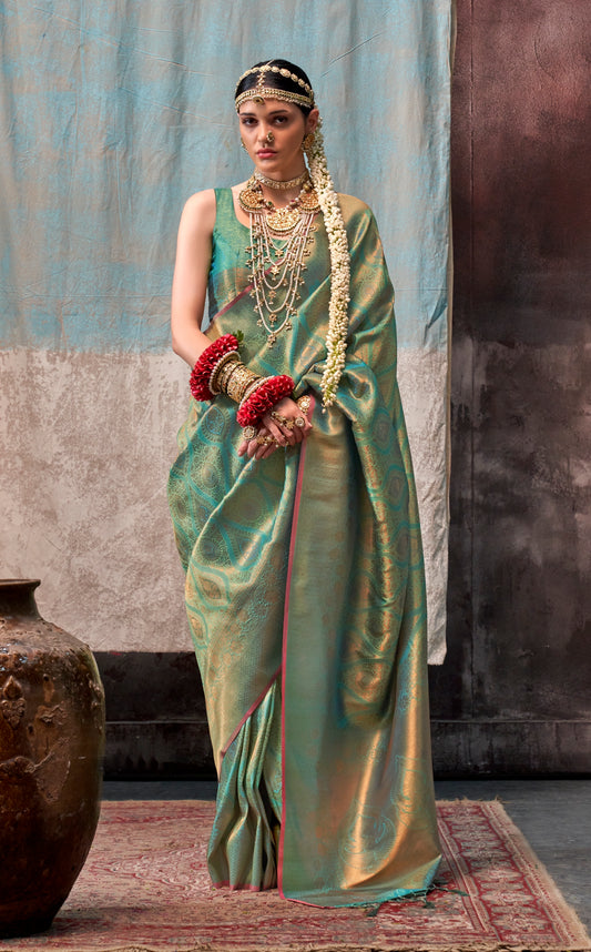 Plus Size Green Color Kanjivaram Silk Readymade Saree