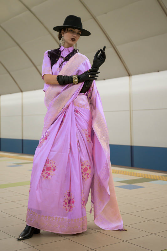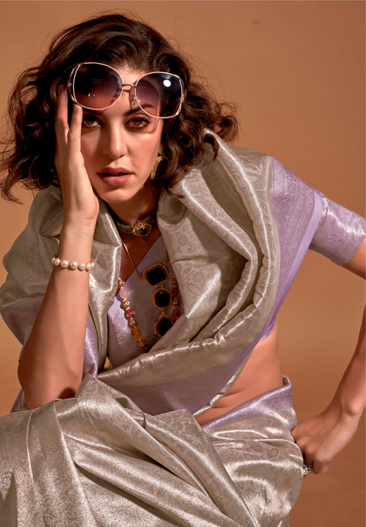 Plus Size Lavender Color Kanjivaram Silk Readymade Saree