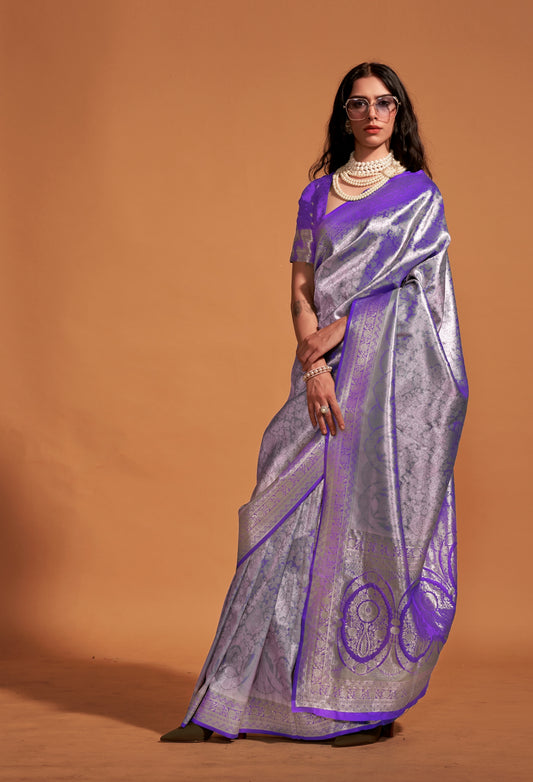 Plus Size Purple Color Kanjivaram Silk Readymade Saree