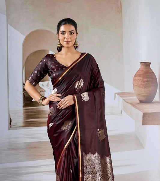 Wine & Mustard Plain Tissue Silk Readymade/Easy Saree