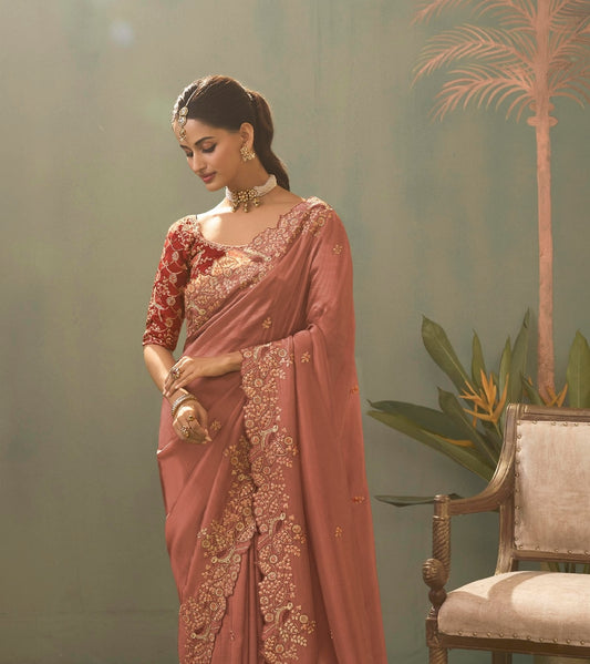Dusty Pink Embroidery Silk Readymade/Easy Saree