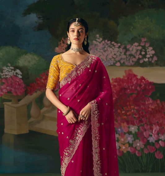 Ruby Pink Embroidery Silk Readymade/Easy Saree