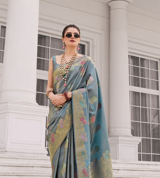 Teal Blue Banarasi Silk Readymade/Easy Saree