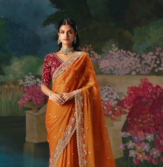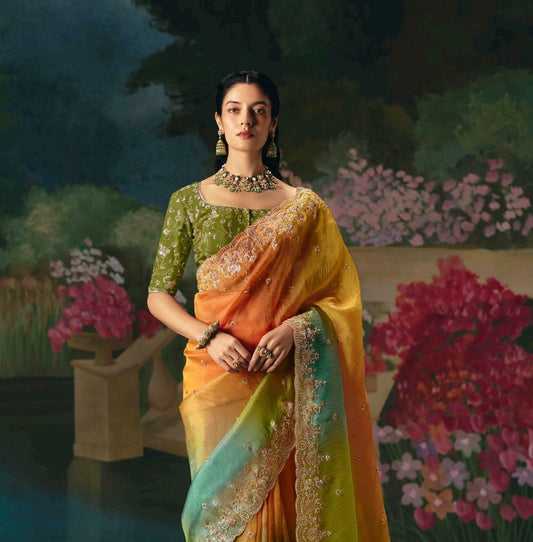 Mustard Yellow Embroidery Silk Readymade/Easy Saree