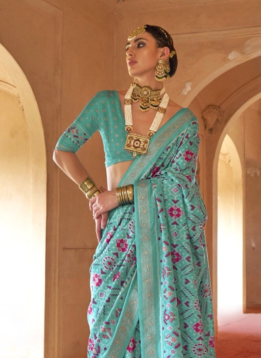 Turquoise Soft Banarasi Silk Readymade/Easy Saree