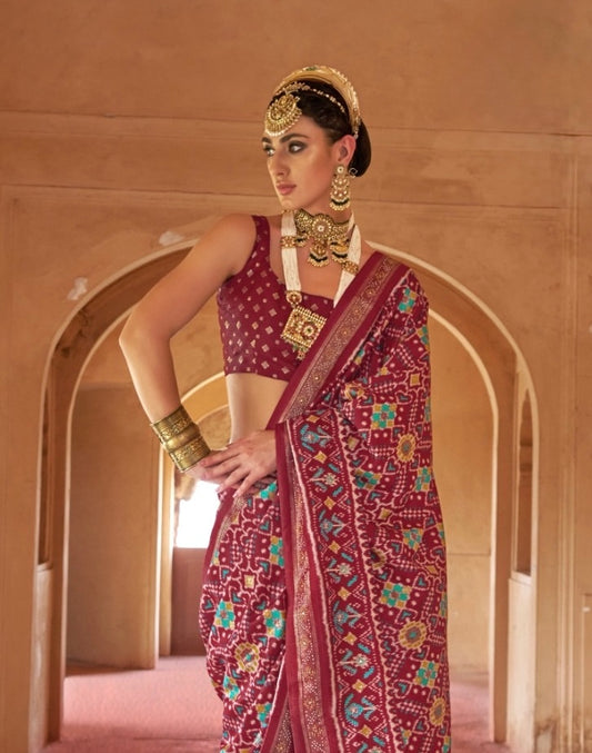 Wine Color Soft Banarasi Silk Readymade/Easy Saree