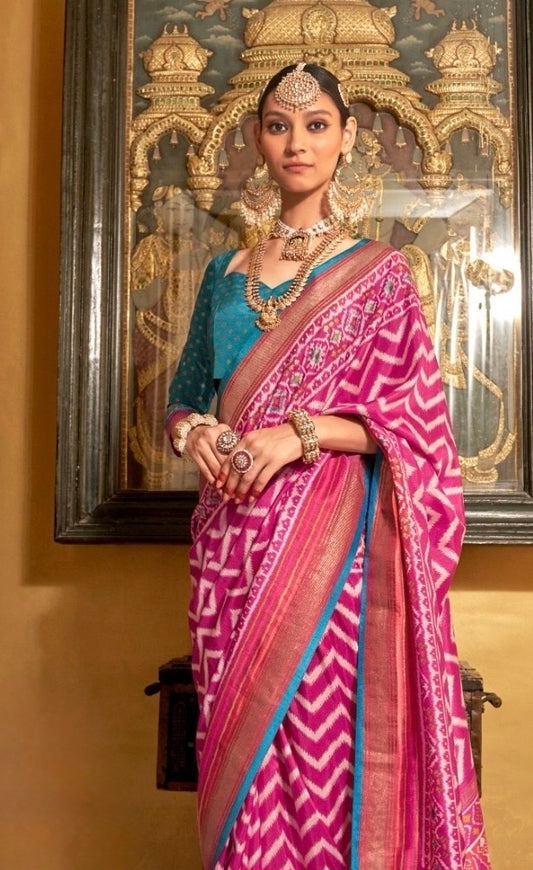 Pink Patola Silk Readymade/Easy Saree