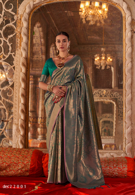 Green Soft Banarasi Silk Readymade/Easy Saree