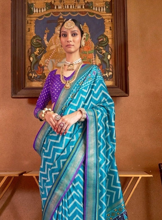 Blue Patola Silk Readymade/Easy Saree