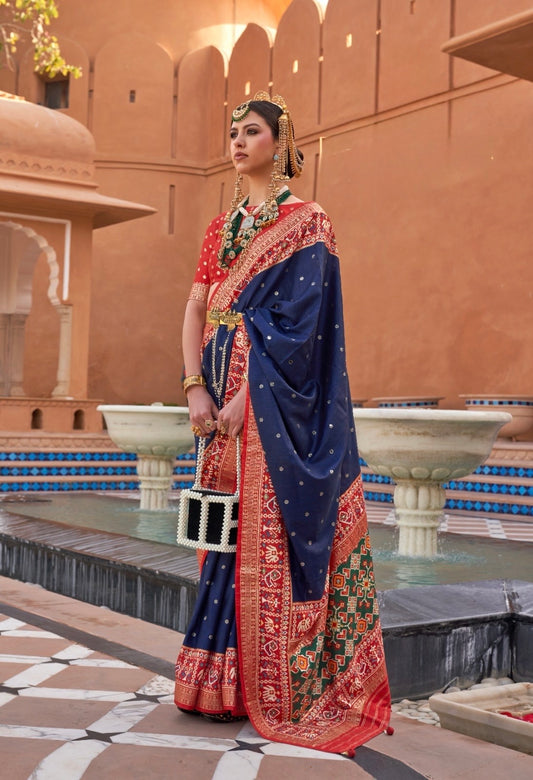 Navy Blue Color Patola Silk Readymade/Easy Saree