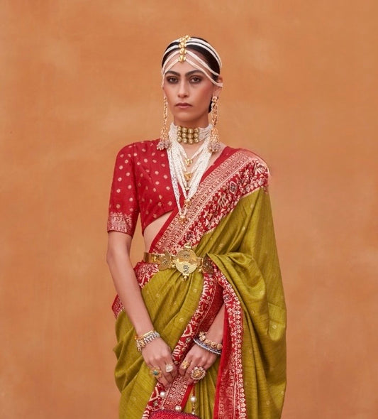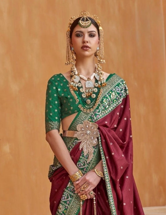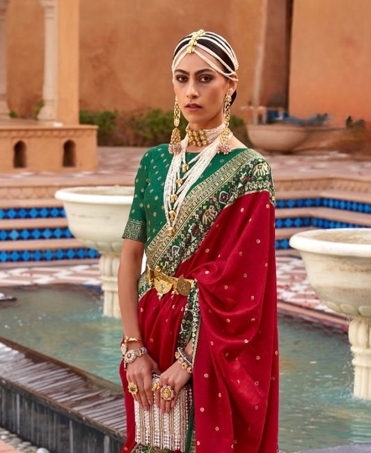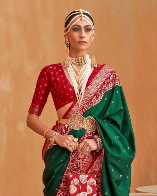 Bottle Green Color Patola Silk Readymade/Easy Saree