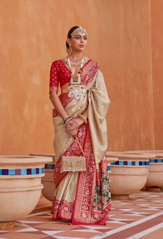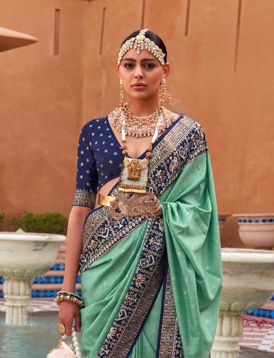Sea Green Color Patola Silk Readymade/Easy Saree