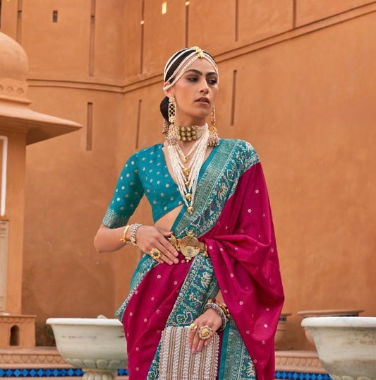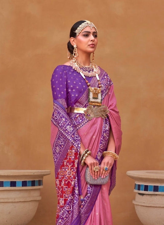 Fuschia Color Patola Silk Readymade/Easy Saree