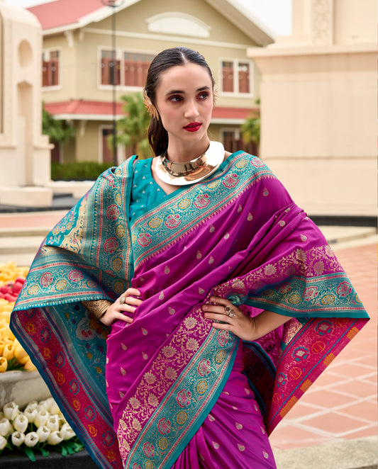 Wine purple Banarasi Silk Readymade/Easy Saree