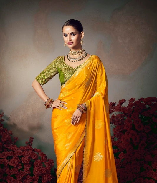 Mustard Yellow Banarasi Silk Readymade/Easy Saree