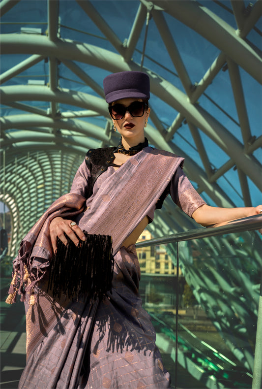 Lavender Kataan Silk Readymade/Easy Saree