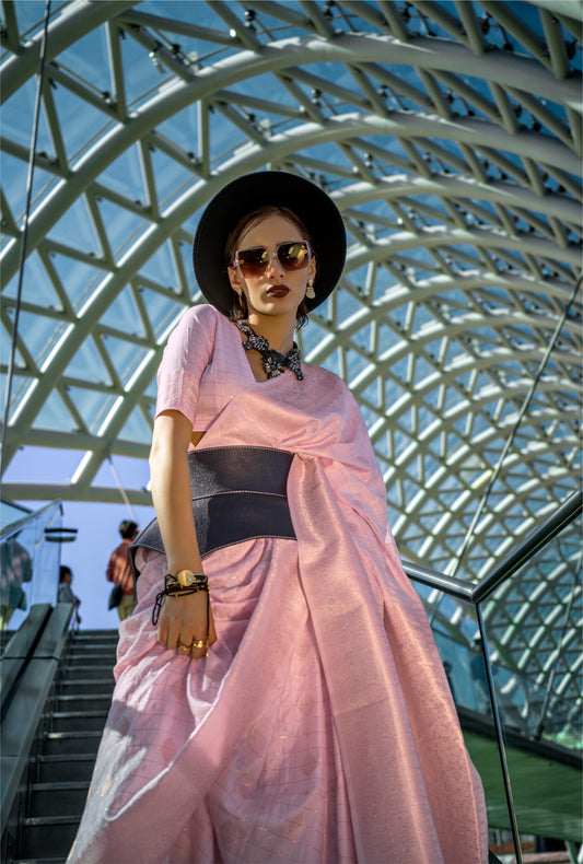 Baby Pink Color Silk Readymade/Easy Saree With Fancy Unstitched Blouse
