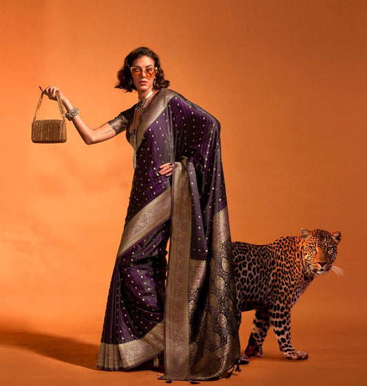 Black Kataan Silk Readymade/Easy Saree