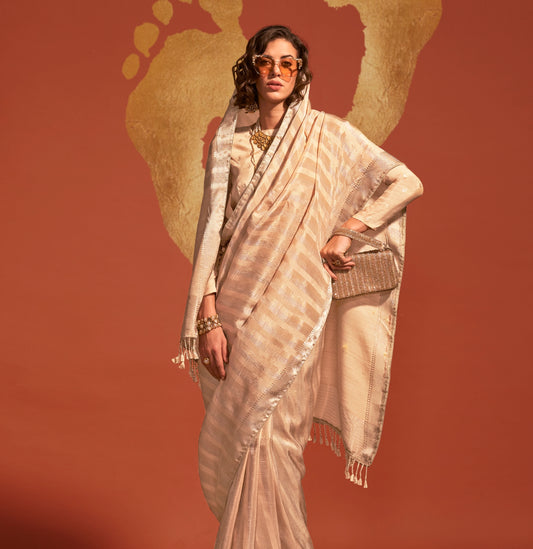 Off White Color Banarasi Silk Readymade/Easy Saree