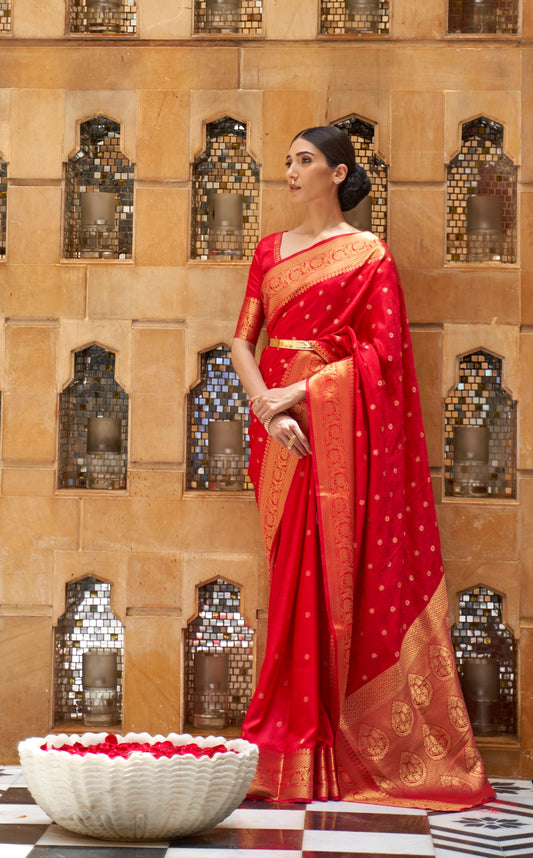 Peach Soft Kanjivaram Silk Readymade/Easy Saree