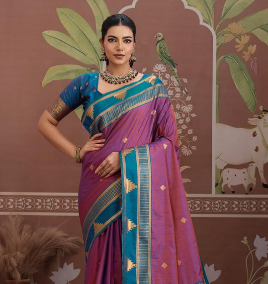 Purple Handloom Pure Coimbatore Silk Readymade/Easy Saree
