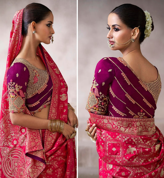 Magenta Color Kanjivaram Silk Readymade/Easy Saree