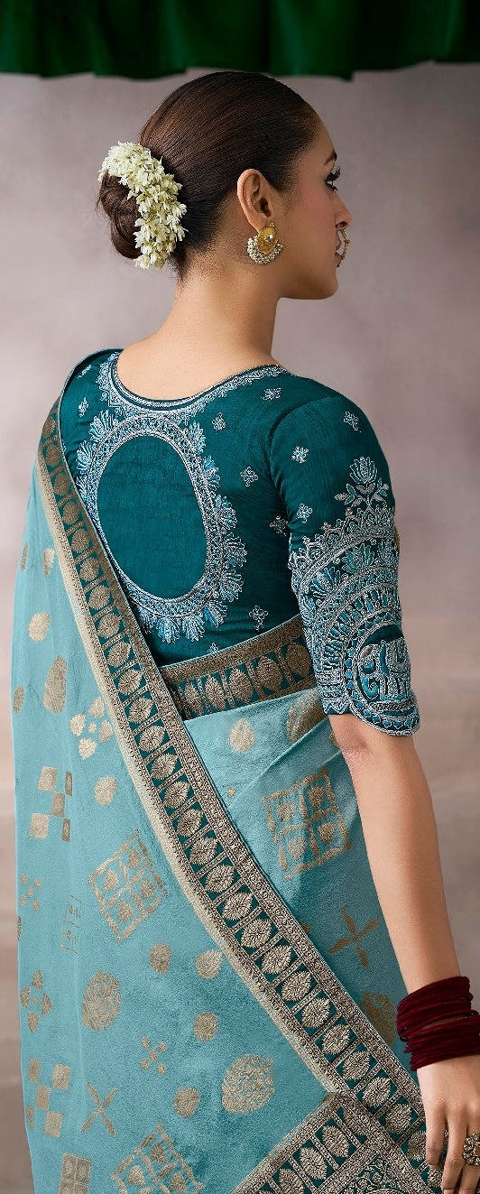 BLue Color Designer Kanjivaram Readymade/Easy Saree