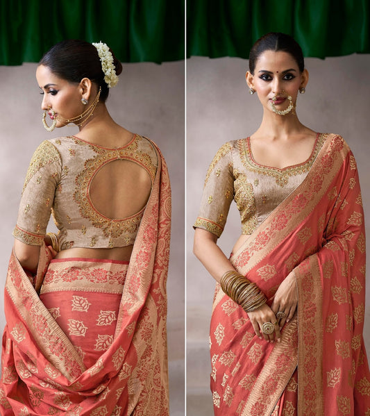 Orange Designer Kanjivaram Readymade/Easy Saree