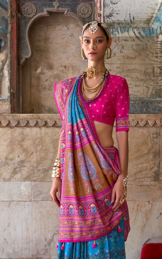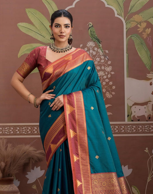 Blue Color Designer Kanjivaram Readymade/Easy Saree