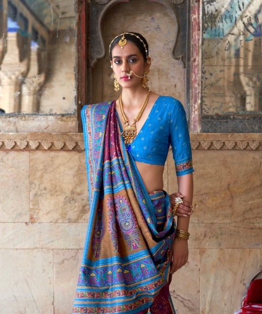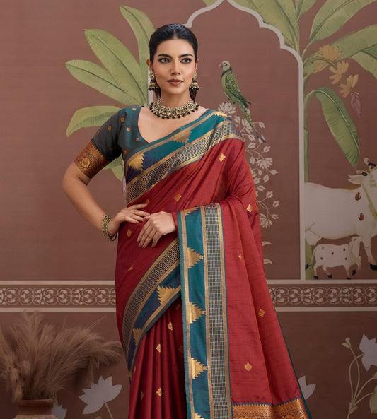 Maroon Color Tussar Silk Readymade/Easy Saree