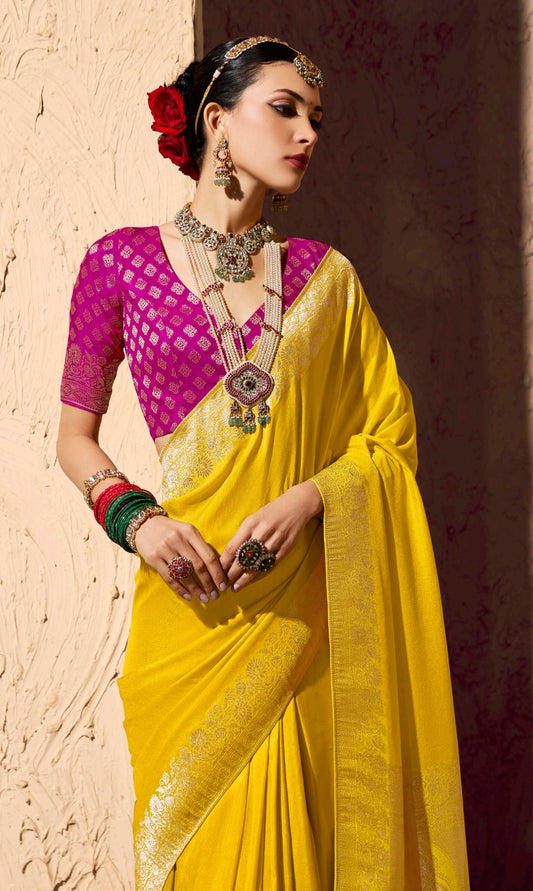 • Yellow Designer Silk Readymade/Easy Saree