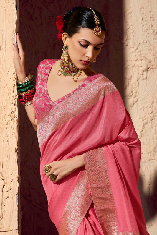 • Pink Cocktail Party Wear Readymade Saree