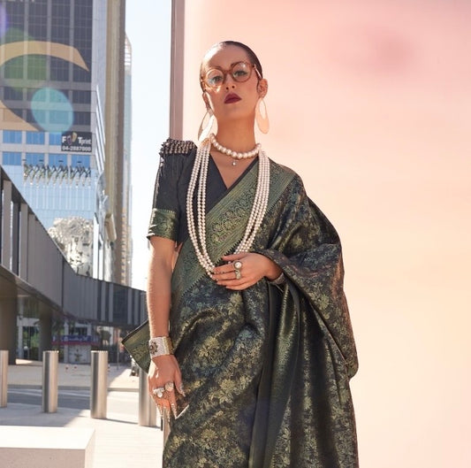 Black Soft Banarasi Silk Readymade/Easy Saree